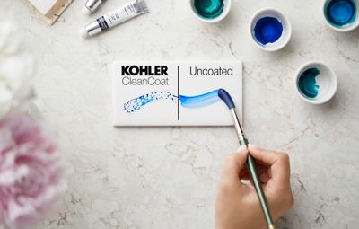 Just as easily your toilet can help lessen the accumulation of the unwanted “guests.” CleanCoat™, a specially formulated enamel treatment, on San Souci repels water and debris, and it reduces mildew and mineral deposits. The sleek, modern look of the concealed and skirted trapways with smooth, easy-to-clean surfaces also reduces cleaning time.
