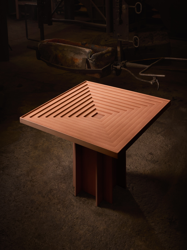 Set within the courtyard of the Padiglione d'Arte Contemporanea during Fuorisalone, the exhibition is anchored by a bold brutalist bathhouse that takes design cues from the prominent bathhouse nestled in the California hills of the Flamingo Estate property and showcases a new expression of an iconic Kohler freestanding enameled cast iron bath with a true metal shroud, strikingly presented in copper.